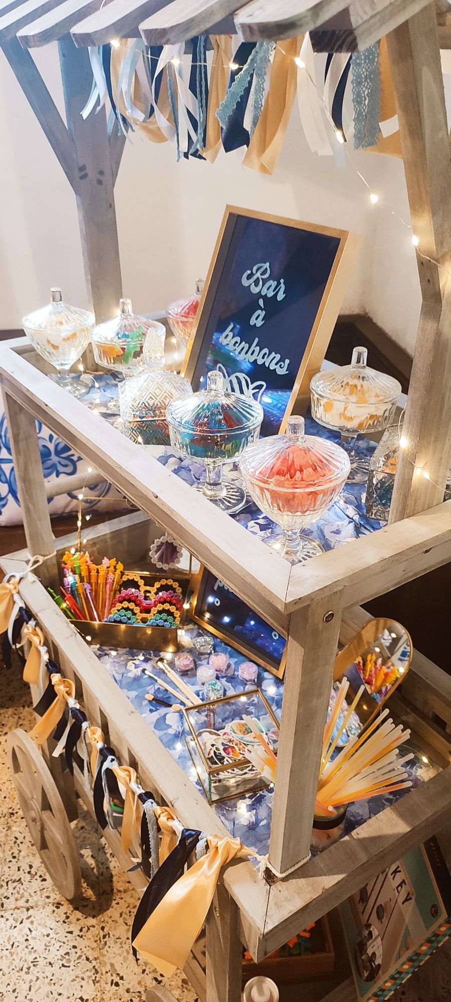 Ce joli chariot en bois candy bar  pour régaler les grands et les petits.